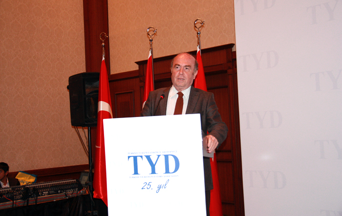 "Cumhuriyetimizin 100. yılında çok daha iddialı olmak zorundayız. İlk beşi zorlamamız gerekiyor. Biz TYD olarak tüzüğümüz gereği iki yıl başkanlık yapıyoruz. Bendeniz onurla taşıdığım bayrağı, yeni bir arkadaşıma devredeceğim. Bayrağı daha yükseğe çekmek için gayret edeceğiz. Bugün kasasında 350 bin lirayı devreden bir başkan olarak huzurluyum. Dernek sitemizi uluslararası platforma açıyoruz. Dışa yönelik çalışmalarımız da oldu. Sizlere yaptığımm çalışmalarla ilgili kısa bilgiler vermek istedim. Bundan böyle bu bayrağı yeni başkan arkadaşımız, layıkıyla taşıyacak. Bendeniz de Yüksek Danışma Kurulu Başkanı olarak görev yapacağım."